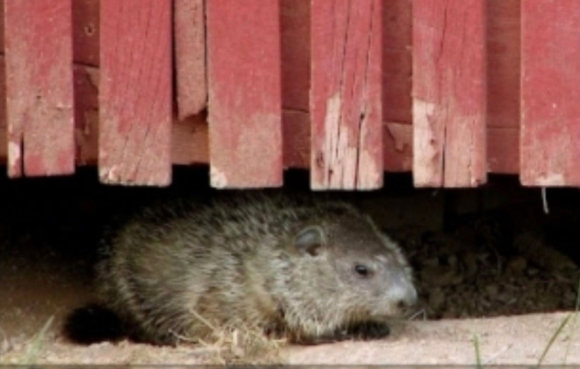 Rusty took up residence under the deck of the main cabin during the construction of “the Big Green Thing” wigwam-styled meeting house. She has raised a number of litters since then.